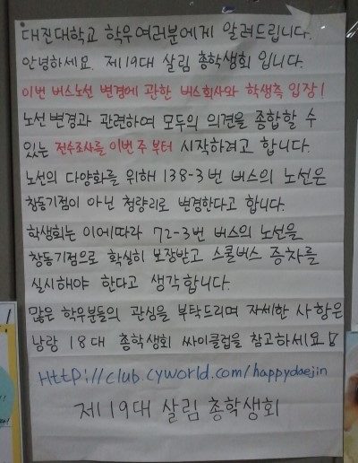 였을 것인데…총학생회는 이 협상 테이블에서 버스노선 유지라는 카드 대신에