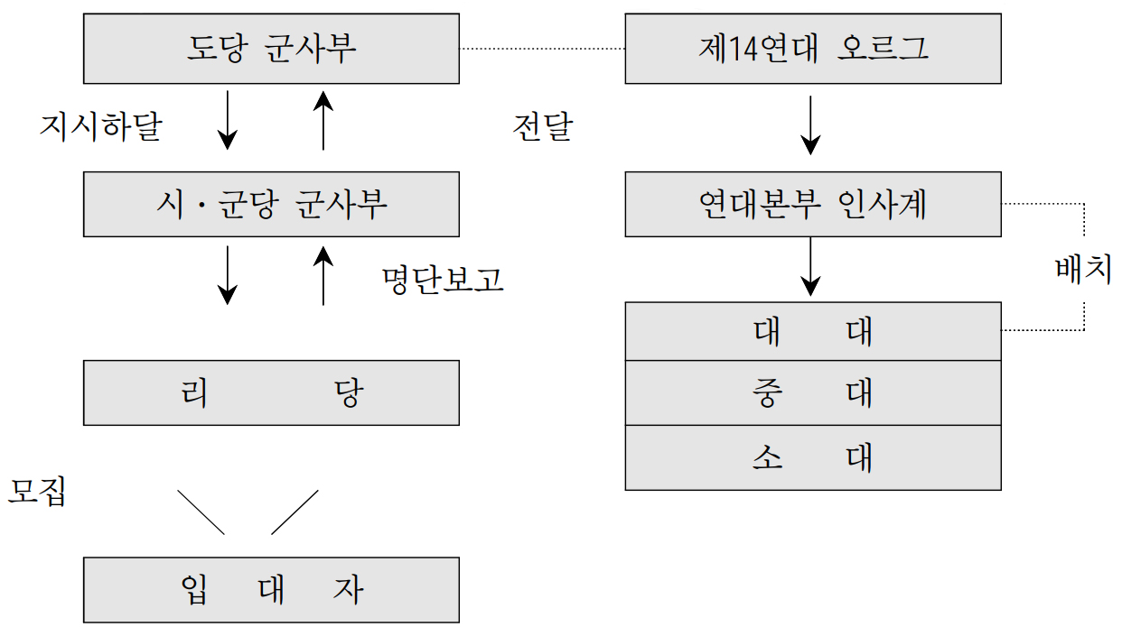제14연대의 경우에는 전남도당(全南道黨) 군사부에서 지도원이 파견되어 있었고 연대 내에 당의 오르그(조직지도원)가 침투하여 조직의 확대․강화에 주력하였다. 당 오르그는 연대내의 군조직책인 연대인사계 지창수와 유기적이고 밀접한 협력 관계를 유지하면서 도당(道黨)에서 추천한 청년들의 입대와 배치, 우익계 청년들의 입대 저지 등의 활동을 전개하면서 세력을 확대시켜 나갔다. 당시남로당 전남도당 조직부 과장이었던 박춘석(朴春錫)의 증언에 의하면, 제14연대의 좌익계 사병 침투 방법은 다음과 같다.