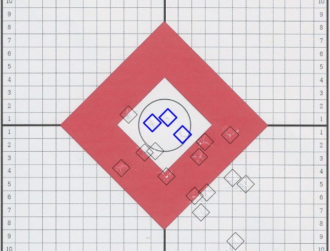 VSR-10 실린더 고장난 것을 부품을 구매해서 고치고, 조준경도 교체함, 첫번째 사격 결과. 오조준을 해야 해서 야금야금, 한 발 한 발 사격해서 기어코는 오조준 점을 찾아냄. 그래도 한 번 찾은 조준점을 유지하는 실력이 늘은 것 같다. 3연속 중심원에 사격 성공. 장기상비예비군 저격수