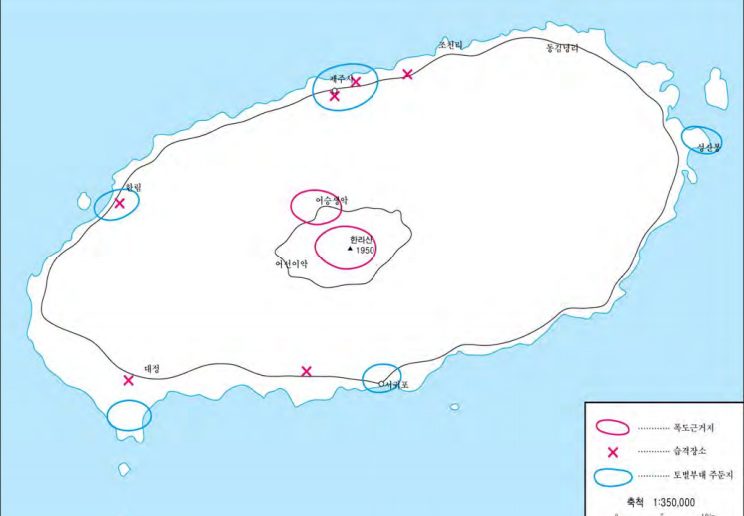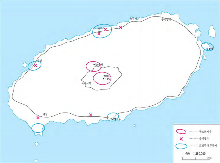 제주 4.3 사건 발발시 경비대 및 인민유격대 배치도