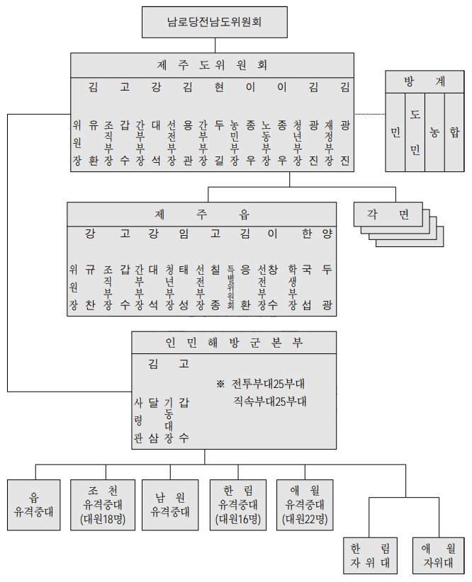 1948년 4월 3일 새벽 2시를 기하여 남로당 제주도위원회는 한라산 정상과 주요고지에 일제히 봉화를 올리는 것을 신호로 무장폭동을 일으켰다. 인민유격대및 자위대원 350명은 도내 16개 경찰지서 중 외도, 구엄, 애월, 한림, 대정, 남원, 성산, 세화, 함덕, 조천, 삼양, 화북 등 12개 지서를 습격하였다. 이들은 경찰관, 서북청년단원, 대동청년단원, 독립촉성국민회 소속 회원 등 우익인사들과 그 가족들을 살해하면서 제주도를 유혈의 참화 속으로 몰고 갔다. 제주도는 사회질서가 무너진 혼란의 소용돌이 속에 휘말리게 되고, 민심은 극도로 동요되어 갈피를 잡지 못하는 사태로 빠져들게 되었다.